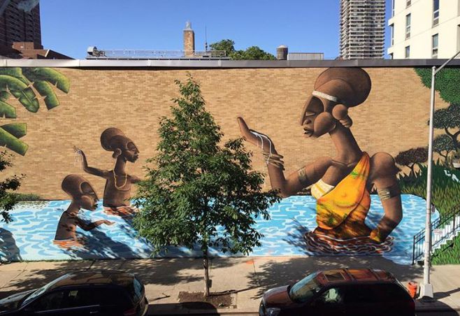 That’s true and it must be a great feeling to hear people say how much they adore your work. I really love seeing your murals pay homage to African culture. From the lifestyle, to the customs down to the clothing…it’s all there. When did you decide to create art in this particular way and why?